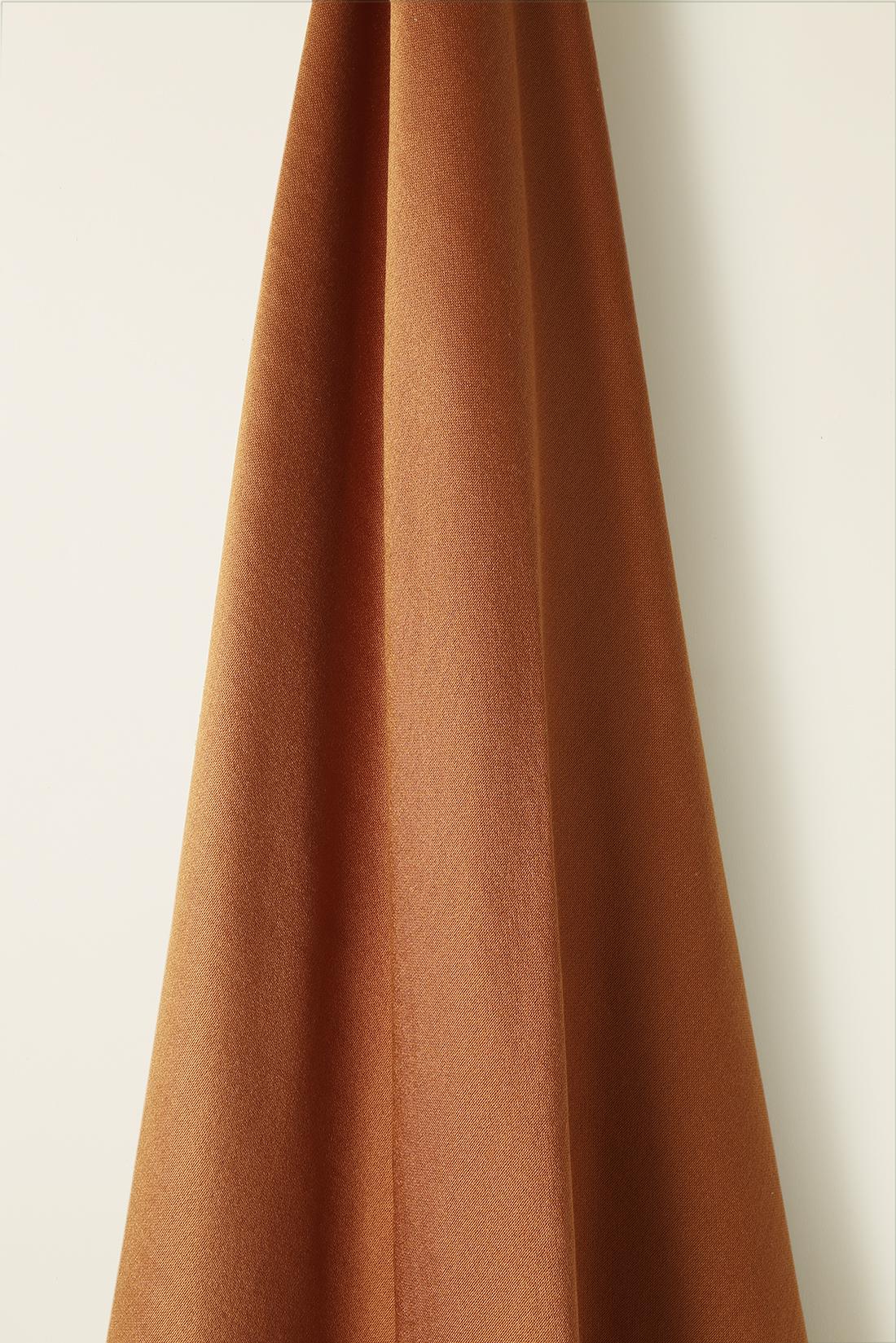Offering a dreamy and liquid drape, Topaz has a slick satin quality while also capturing a soft sateen wool handle. High quality Italian spun silk yarn is hand dyed and then oiled when put onto the cone, contributing to the lustre of the colour. The 100% wool weft and 100% fine silk warp yarns are expertly custom yarn dyed to match to our exact specification to achieve a consistency of colour throughout the weave. The result is a rich, vibrant, and supremely sumptuous fabric proudly woven in the UK.